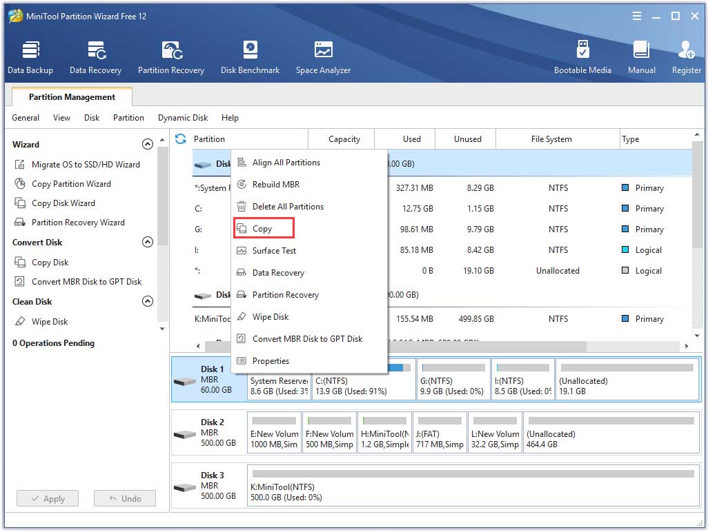 Qui, ti consigliamo di utilizzare MiniTool Partition Wizard. Questo potente software ti offre una soluzione perfetta per quanto riguarda il recupero dei dati, il clone del disco e la gestione delle partizioni. Si noti che è necessario eseguire questa operazione su un computer che esegue Windows.